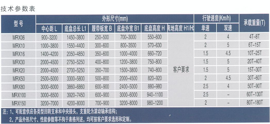 15噸帶回轉(zhuǎn)支撐的履帶的底盤(pán)性能參數(shù):承載總重:15噸,工作壓力:16MPA,行駛速度1-2公里每小時(shí),接地比壓:0.089,爬坡度數(shù):20度。制動(dòng)形式:機(jī)械制動(dòng)加液壓鎖制動(dòng)。回轉(zhuǎn)接頭:定配。