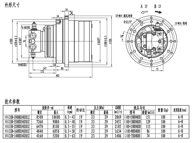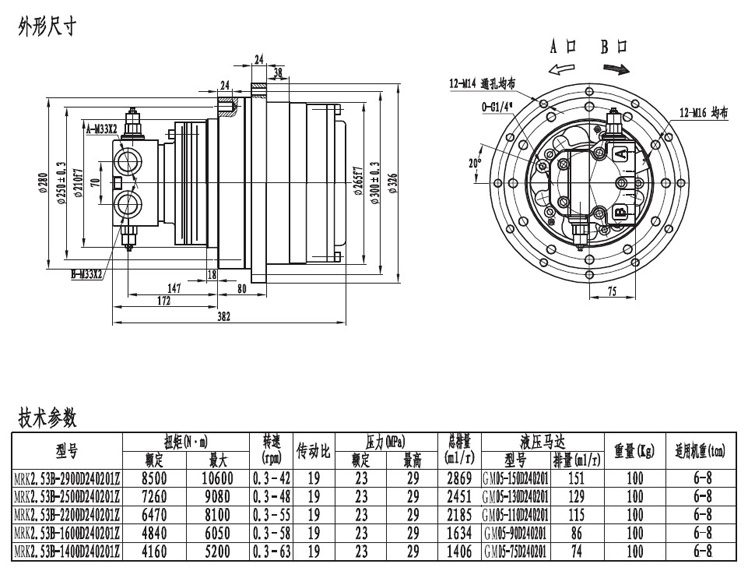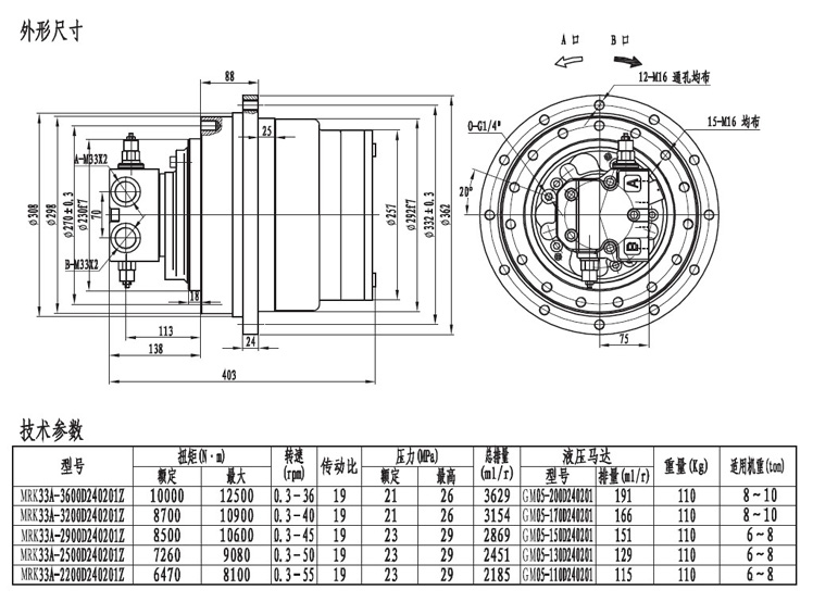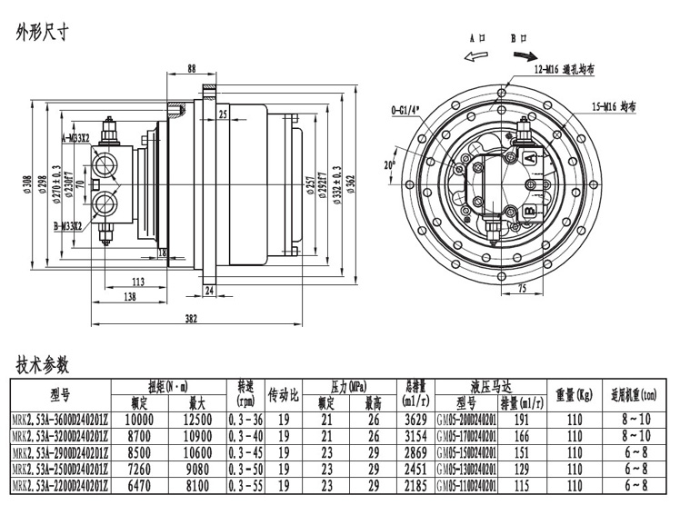 MRK2.53系列履帶(車(chē)輪)用的行走減速機(jī)輸出扭矩在10000左右,采用兩級(jí)速比的減速器帶動(dòng),最低輸出轉(zhuǎn)速0.3r/min.